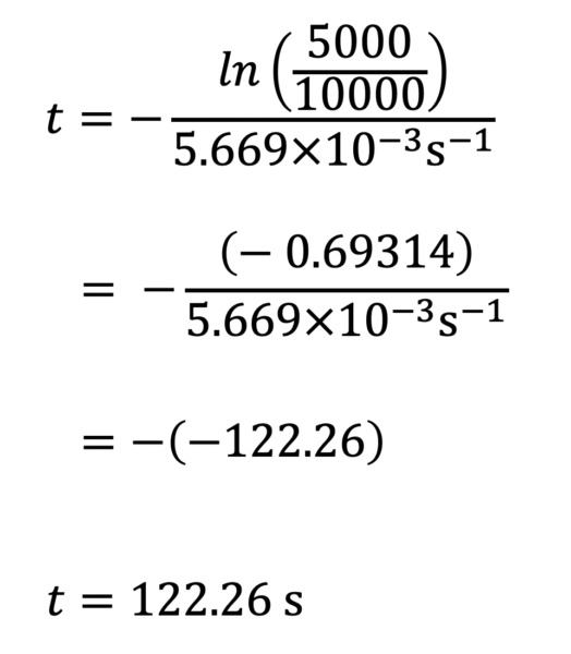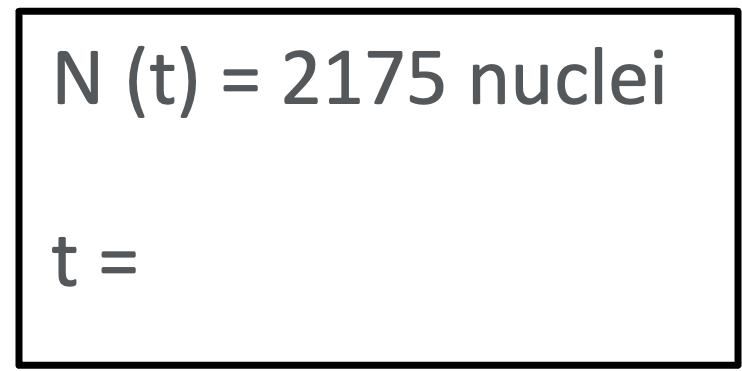 According to the law of radioactive decay, t is expressed as a function of ln(N/N0) in the numerator and λ in the denominator (See the theoretical key points handout for a step-by-step guide to calculate t ). Therefore, we can calculate the necessary values for t.