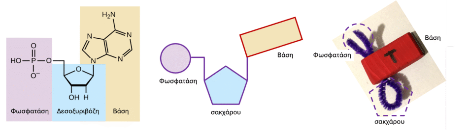 Εικόνα 2: Η χημική δομή των νουκλεοτιδίων και πώς απευθύνονται στα μέρη του μοντέλου.