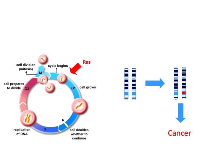 Tutti i tipi di cancro hanno origine da cambiamenti nella sequenza di DNA in alcune delle nostre cellule. Il materiale genetico all’interno delle cellule è esposto all’azione di mutageni come le radiazioni UV, per cui può accumulare errori durante la replicazione. A volte, una di queste mutazioni può alterare la funzione di un gene chiave, avvantaggiando la crescita della cellula in cui ha avuto luogo e di quelle da essa derivanti; il tasso di divisione di queste cellule sarà maggiore rispetto a quelle che le affiancano.