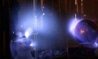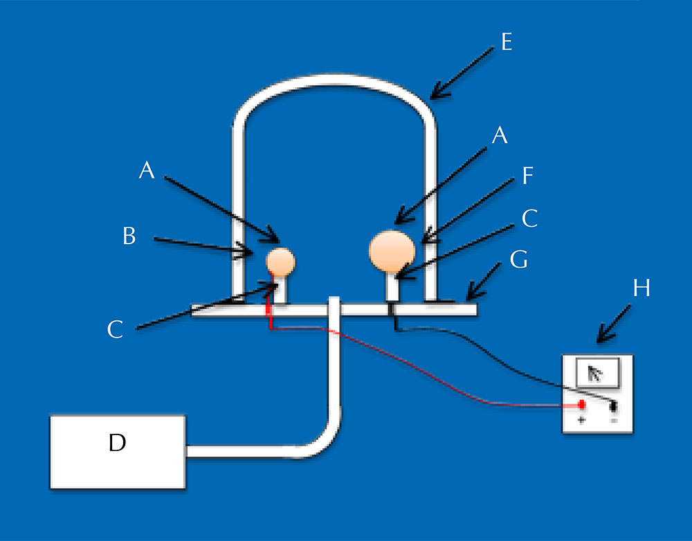 In this experiment, similar to Birkeland’s, we simulate the aurorae and the Van Allen belt. The equipment should be set up so that the electrode suspended from the top of the vacuum chamber is the cathode, representing the Sun and generating a stream of electrons (figure 2). The magnetic sphere is the anode, representing Earth, and its magnetic axis should be perpendicular to the stream of electrons.