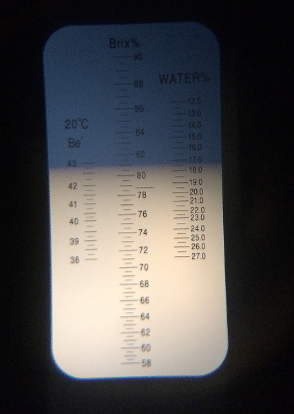 A refractometer determines the refractive index, according to how strongly the honey deflects a light beam. In other words, it indicates the sugar content or, indirectly, the water content of the honey. Since honey contains different sugars (mainly mono- and disaccharides), which have different effects on the refractive index, this does not determine the true water content. However, it is a standardized procedure in the quality guidelines of beekeepers, and the resulting error is accepted.