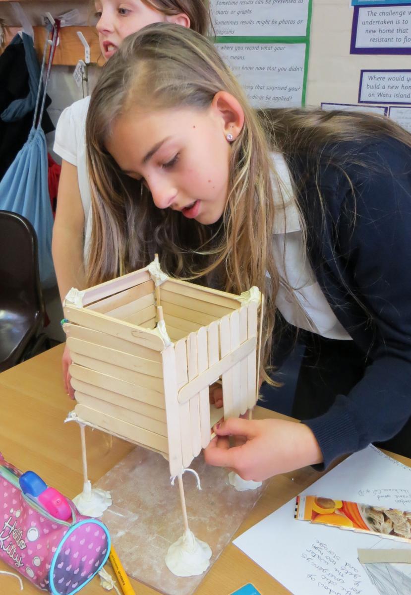 En grupos, los estudiantes diseñan y construyen un modelo de una casa a prueba de inundaciones en la isla ficticia de Watu. Luego, para probarla, la ponen en el agua y la rocían con una manguera. Reflexionan sobre cómo las inundaciones afectan a la comunidad entera, y piensan cuál sería el mejor lugar para situar una casa. El desafío puede consistir en una actividad de todo el día, o puede ser dividido en varias actividades que ocupen varias clases.