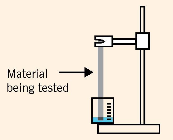 Anote la altura del agua absorbida por el material, usando la tabla de una de las hojas para los estudiantes.